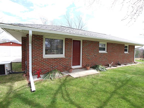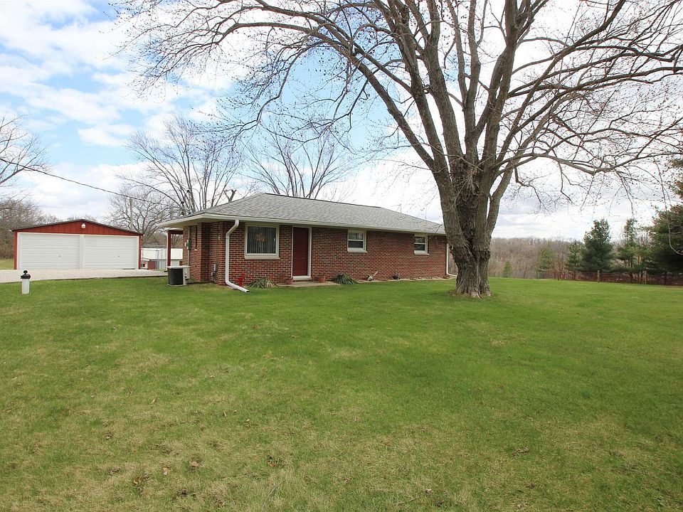 Looking for country property? Check out this private 13+ acre setting with a 1BR brick ranch, 2 car garage, 30 x 56 Morton building, 42 x 20 storage shed, 18 diameter corn crib and a pond! Well maintained brick home includes appliances, a full basement and offers newer shingles and windows. Bedroom includes 2 cedar lined closets. Large 40 x 13 covered back patio is great for relaxing! 2 stall detached garage offers newer shingles & overhead doors plus an adjacent dog kennel. New shingles on house & garage 2017. New furnace, 200 amp service & rewired house 2008. New windows and entry doors 2010. Morton building (2000) includes 4-5 horse stalls and hay storage. 4 pastures plus fruit trees. New well 1991 and new pump 2011. New garage doors and house gutters 2021. Pool table, John Deere 320 riding mower & push mower remain.