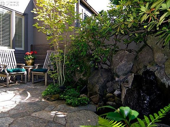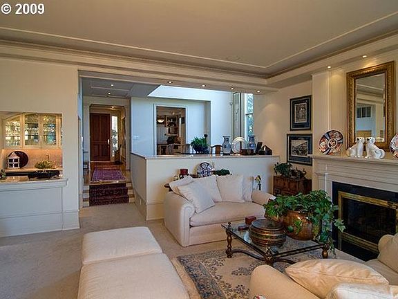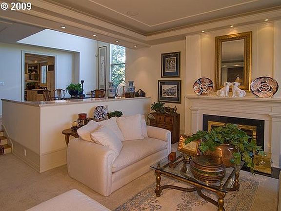 On the Willamette River w/mesmerizing views of city & mountains, this traditional condo updated in 1994 features comfortable living & dining rooms w/elegant frplc, moldings, custom built-ins & spacious windows. Upstairs, cherry wood library w/mini bar & custom built-ins. Gourmet kitchen w/eating area. Extra lg 2 car gar directly attached to house.