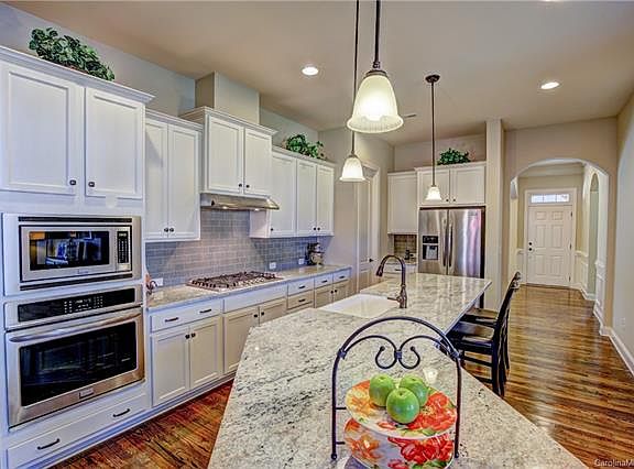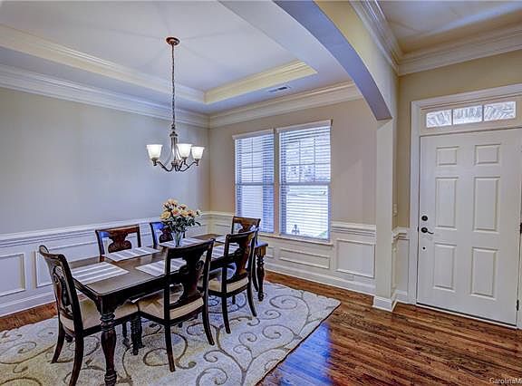 Located just off I-485 at Lawyers Road in the Enclaves at Crismark is this STUNNING LIKE NEW CRAFTSMAN STYLE 5 BEDROOM, 4 BATH HOME WITH POTENTIAL MEDIA ROOM. This home boasts a large open plan with 4 bdrs. on Main and Loft, Bdr. and Bath Upstairs. Upstairs unfinished space can easily be finished as a 6th Bdr. or Media Room. Home is heavily upgraded with coiffured and trey ceilings, transom windows, wainscoting, crown molding, site finished hardwood floors, huge island with gorgeous granite, drop zone, laundry sink, stainless steel cook top gas stove, wall oven, farmhouse sink and more. You'll love the large 2 level deck that extends the entire length of the rear of home and overlooks a tree lined back yard with common open space and creek behind. Community features pool, clubhouse, tennis courts, and playground for your outdoor enjoyment. Come home to the Enclaves at Crismark in Indian Trail, NC.