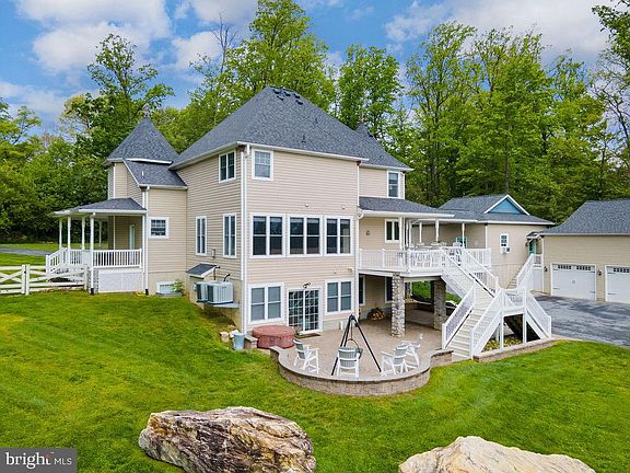 Welcome Home to Your Very Own Private and Breathtaking Castle! Gorgeous Victorian on 1.74 acres! This home welcomes you with the wraparound porch where you will hear Mother Nature whisper as you rock your cares away. The canopy of mature trees provides privacy and peacefulness surrounding your perfect oasis. Greeted through the two story foyer, you will experience luxury as well as warmth as you enjoy the formal living room that could also be a spacious office. The gourmet kitchen with large island will please the most discerning chef as you prepare the finest meals making wonderful memories with dinner parties to be held in your dining room. The cozy family room with stone fireplace and walls of windows shares the most spectacular views of the hillside. The private level boasts the primary bedroom and sitting room exuding the most comforting area to retire for the evening while enjoying a spa like experience in the oversized soaking tub. Additional private level bedrooms include a large bonus room/bedroom encompassing architectural details that make this home a step above the rest. Lower level is the perfect place for entertaining with newly refinished spaces to accommodate large gatherings with a wet bar, media room, stone fireplace, additional bedroom and full bathroom. This is an extremely will built home with 2' x 6" framing and R70 insulation making it energy efficient (Seller's electric bills have not exceeded $250/month year round). The walk out to the paver patio in the back yard is the perfect extension to your entertainment spaces. These views are simply breathtaking. Additional amenities include a separate 2 car garage and an additional oversized 4 car garage with heat and electric perfect for storage for your boat, or a car enthusiast's dream! High end finishes and carefully crafted spaces throughout this home make this property a once-in-a-lifetime opportunity to live the lifestyle dreams are made of. P.S. There is an Audubon property behind this home adding to the stunning views-Absolutely beautiful!