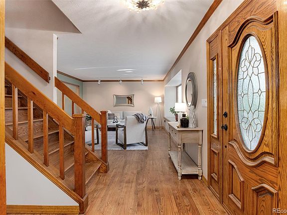 Welcome to this well appointed classic home on level quiet cul-de-sac in the desirable Foxridge neighborhood. The front porch is wonderful for relaxation, watching kids play in cul-de-sac, chatting with neighbors. Walk into solid wood flooring throughout the main level with private office, huge custom window seat, dining room that also allows access to back patio plus lets in the natural light. Gourmet Kitchen w/ Café appliances, duel fuel range, pot filler, custom real wood cabinets with all the whistles and bells, insta hot water, water filter system, wine refrigerator, with stunning views into your back yard. Family room has vaulted ceiling, sky lights, gas fireplace and French doors with built in blinds that take you out to the covered patio and your own private lush park like yard. Mud room also on main floor with sink, cabinets and landing pad from garage. Upper level has 4 bedrooms with totally remodeled hall bathroom with integrated motion sensor night lighting. Primary suite has vaulted ceilings, huge walk in closet and spa inspired fully remodeled 5 piece bath including new jetted tub, heated floors, large shower with bench, stunning lighting. Finished basement offers a flex space with queen built in Murphy Bed, ¾ bath, a fabulous large laundry area with tons of cabinet storage, washer/dryer, and large refrigerator included. Bonus workshop and storage area too. Stone Coated Steel Class IV Roof, Half Court basketball at pocket park at end of block, Foxhill Park located around the corner, and 2 sets of tennis courts in the neighborhood, plus optional membership to the pool and racquet club! Award winning Littleton Schools, easy access to major highways, shopping.