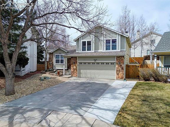Welcome Home! This beautifully maintained home checks all the boxes starting with great curb appeal and a warm welcome as soon as you step through the front door. The hardwood floor entry and vaulted ceilings set the tone for a spacious and inviting main level. You'll be greeted by a large living and dining room, perfect for hosting or unwinding. The kitchen is a true standout, featuring a stylish decorator backsplash, Corian countertops, gas range with lower double oven, microwave, French door refrigerator, pantry, and a cozy eating area. Recessed lighting gives it a modern, well-lit feel. The kitchen opens to the large family room below, where the stunning fireplace and rich hardwood floors immediately catch your eye. On the lower level, you’ll also find a convenient half bath and laundry area. Upstairs, the primary suite offers a peaceful retreat with a walk-in closet and a beautifully updated bathroom featuring a tiled walk-in shower with built-in seat and shelves, soft-close vanity drawers, cultured marble sink, and a skylight that floods the space with natural light. Two additional bedrooms and another full skylit bath complete the upper level. Step outside and you’ll find a backyard built for entertaining, a true dream space. The 22X14 patio is perfect for get-togethers, complete with a remote-controlled awning for shade when you need it. The private, terraced yard features a flower garden, a greenhouse, and a handy shed plenty of room to relax, grow, and enjoy. Recent upgrades include: New carpet installed in 2022, New roof with impact-resistant shingles installed in 2024, and Recessed lighting for a fresh, modern glow and for year-round comfort, the home features a cozy fireplace for winter and central A/C for those warm summer days. Conveniently located near parks, schools, shopping, dining, and with easy access to all that Colorado Springs has to offer this one feels like home from the moment you walk in.