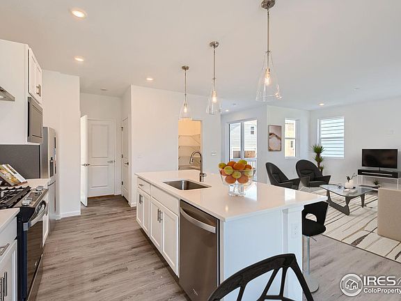 The Miramont floor plan is a beautifully designed, super functional home located in the charming city of Fort Collins. Offering 1,825 finished square feet and over 700 square feet in the unfinished basement., this spacious and well-thought-out layout provides a modern living experience for homeowners. With three bedrooms, two and a half bathrooms, and a two-car garage, the Miramont seamlessly blends style with convenience. As you enter, a welcoming foyer greets you and leads into an open-concept living space. The kitchen, dining area, and living room flow together effortlessly, creating an ideal environment for both daily living and entertaining. Situated near schools, parks, golf courses, shopping, restaurants, and a movie theater, this MOVE-IN READY home has no metro tax, providing an attractive and convenient lifestyle.