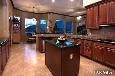 Quiet,Views,hilltop lot provides privacy & spectacular mtn views-from every window. Designer touches of granite,slate & tile, Alder wood interior doors & more. Quiet backyard w/views of golf course, mountains, city & wild life in Canyon wash below. Don't miss pool on s side w/Heliocol solar panels. Enjoy open floorplan w/spacious entertaining friendly kitchen. Enjoy waking up to Finger Rock mtn. every morning. Shows like a model. OWNER/AGENT
