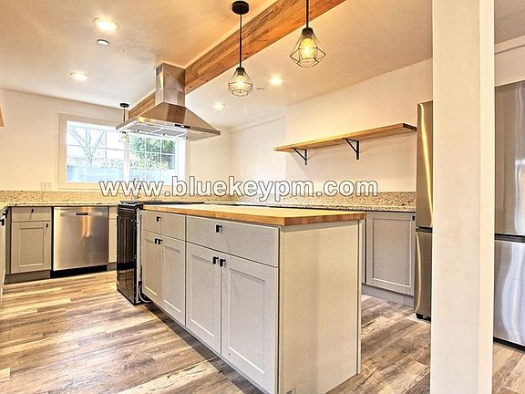 Great daylight basement apartment with luxury vinyl plank flooring, large windows throughout, a gas fireplace, open beam ceiling and huge kitchen. This is a unique find featuring a huge kitchen with stainless appliances, an abundance of cabinets and counterspace plus a bakers island. A dream kitchen for anyone who loves the culinary arts! The bathroom has a tub/shower combo and convenience washer and dryer for your use. Both bedrooms are spacious with large windows to let in the natural light. Cadet heat. Pets are welcome to 30 lbs max weight. Call Blue Key Property Management, Inc. $1895 Rent, $1895 Security deposit, $55 non refundable screening fee per adult age 18 and older. $800 additional refundable deposit per pet if owners allow pets. Renter's insurance required. Blue Key Property Management, Inc. licensed in WA and OR. 6015 NE 42nd Avenue Unit B, Portland, OR 97211