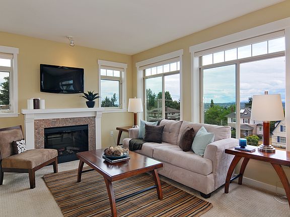 Welcome to the gracious view condo that you will be proud to call home. Expansive views of the Puget Sound and Olympic Mountains adorn the main living spaces and master suite. Entertain your friends in the large great room area, complete with fireplace, modern kitchen and adjacent patio. A separate second suite is around the corner and at the other end of the place, making it a great getaway for overnight guests. Or, set it up as an office that you can close off when your work is done. Apartment includes a large private storage room near the parking garage - perfect for storing your bikes and off-season items. This condo is in the heart of the Phinney Ridge neighborhood that so many consider one of the best places to live in Seattle. Walk to the zoo, to Green Lake, or up or down the street to one of the local eateries. And just downstairs is one of the best coffee shops in town, Fresh Flours. Contact Bill for more information or to make an appointment for viewing. Water-Sewer-Garbage utilities are included in the rent. No pets. No smokers. $40 per adult application fee. $250 move-in fee. Parking for one car is included in the parking garage.