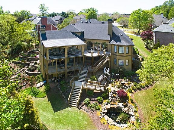 Enjoy the tranquility of your own oasis! This Dream Home sits on a .69 acre cul de sac lot that is distinguished by its privacy and incredible landscaping! Unwind on the covered travertine balcony, huge deck area off the terrace level or the front flagstone patio areas! Fantastic open floorplan w/master on main! Master spa w/ semmless glass shower & jetted tub. Chefs kitchen w/granite SS Appliances & vaulted keeping room w/fireplace & custom cabinets! Finished terrace level w/bar,rec area, media area, fireplace & gym w/steam shower and bath! 3 car garage!