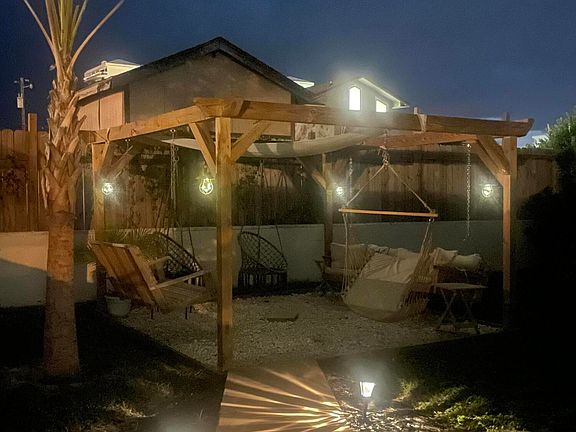 Adorable duplex on the quiet East End close to St. Andrews State Park! Each unit has 2 bedrooms and 1 bathroom with large separate laundry rooms. Large closets and extra storage closets inside! Double concrete driveway. Fully fenced yard. 2 outdoor showers. Custom built swing set. Palm trees. Close to Dollar General Market. Less than 5 minute walk to the beach! Golf cart assessible. New roof 2019. New septic 2017. Unit B got new appliances in 2018. Unit A got new appliances in 2023. Rent one unit and live in the other!