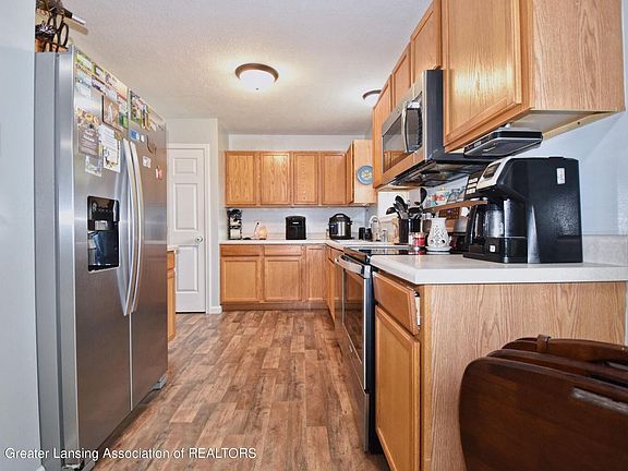 Move in ready ranch home with 4 bedrooms and 2 full baths. Large covered front porch, Deck off the back, Fenced yard, Storage Shed, Play set, Fire pit, Attached garage with dog run, concrete driveway. Newly finished basement includes 4th bedroom, Full bath, Family room with egress window, Office/Kitchenet. Water heater new. There are 2 driveways one off each road. Seller runs a daycare so showings allowed after 6 pm and on weekends. Extra fenced area is removable. Reserved; washer, dryer, 2nd refrigerator in LL, cameras and system and freezer, flag pole