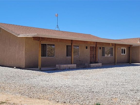 OPEN SKIES, Open floor plan. This 3bd/2ba home gives the feel of the great outdoors but is still not too far from town. This turnkey home is waiting for you to come and love it. Fresh indoor paint and new luxury vinyl flooring. Granite kitchen countertops, a built-in microwave, and a refrigerator are included. There is a brand new air conditioner! Over two acres to enjoy, and bring your added design ideas. Only eight miles from downtown Joshua Tree and Yucca Valley.