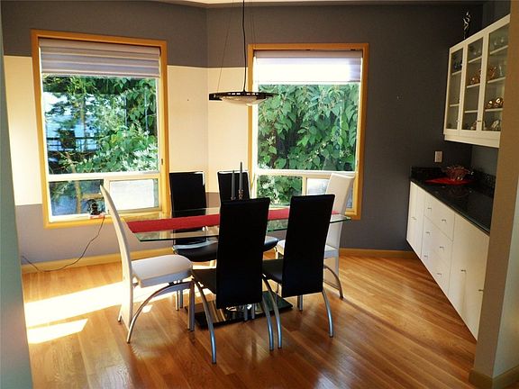 Contemporary Custom Built 4 Story Home overlooking Saratoga Pass and all 3 Islands~House offers view from every floor with decks on each level~Dramatic entry on main floor w/ formal DR, LR with gas F/P, informal DR off large kitchen, D'cor appliances~Slate floor family room~2nd master w/ jet bathtub~Top level w/ master, extra bedroom & full bath w/sauna~Rec room, bedroom, full bath, laundry downstairs~Radiant heat~Too many amenities at this unique view property~Come to experience the best in NW.