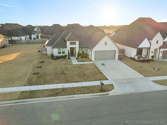 Constructed in 2020, this nearly-new single story gem has it all in the highly-desirable resort-style community, Villas of Addison Creek. Unobstructed pond views, expert landscaping and stylish, modern finishes make this home exceptional. The home features spacious open-concept living, upgraded kitchen with built-in gas cooktop and double ovens, A-frame back patio and additional flex room to utilize as an office or game room. Master suite features vaulted ceiling, dream bath with walk-in shower, tub, separate his and hers vanities and oversized walk-in closet. Enjoy luxury neighborhood amenities including 26 acres of ponds and walking trails, neighborhood pools, clubhouse and fitness center. Bixby schools with all of the convenience of South Tulsa!