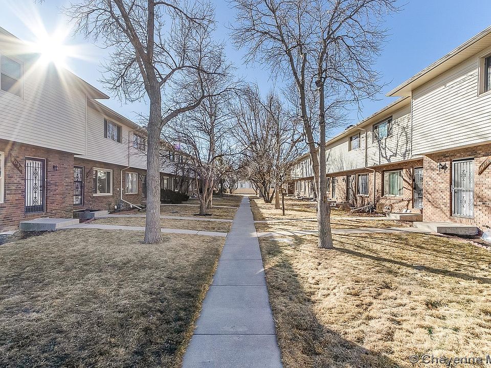 This larger townhouse is move in ready, it sits in a beautiful courtyard. Featuring 3 bedrooms, 2 baths, & a 2 car garage, with an unfinished area in the basement for a 3rd bathroom. It has been freshly painted throughout, carpets cleaned, and a brand new water heater. Ideally located in North Cheyenne within walking distance to shopping, restaurants, schools, the City greenways and parks. Seller is providing a 1 year warranty for the buyer. Gas is turned off in the fireplace. The fireplace has not been turned on for the last 10 years. Seller will not repair or warranty the fireplace.