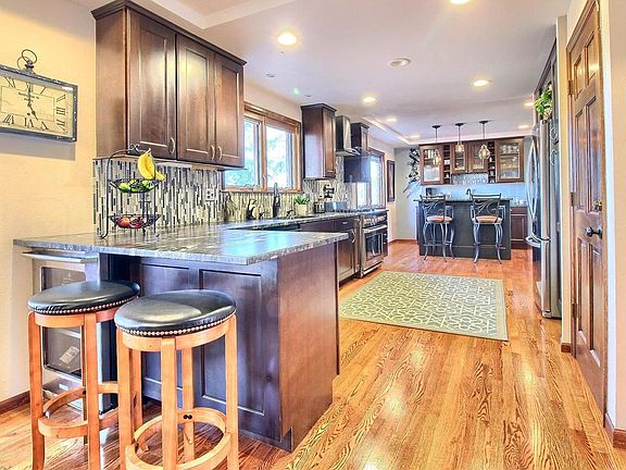 Stunning remodeled home on large lot. This home features an expanded gourmet kitchen with custom granite & cabinets with pullout shelves, italian 6 burner gas stove with electric oven and handy pot filler. New Covered trex deck with gas firepit over looking one of the largest lots in the area. Remodeled master bath and walk-in closet plus fully finished walkout basement with builtin entertainment center and speakers, a dry bar with beverage cooler, bedroom with murphy bed and a 3/4 bathroom. As you approach this great home you quickly notice the expanded driveway and front patio with stamped concrete, the new roof and features like the pella windows with integrated blinds and new entry door. You can move right in knowing that this home has a newer high efficiency furnace, newer skylights, gutter helmets and a new gas fireplace. All this and located just steps from Cottonwood Elementary and the Cherry Creek Vista pool.