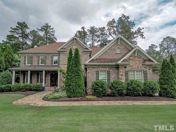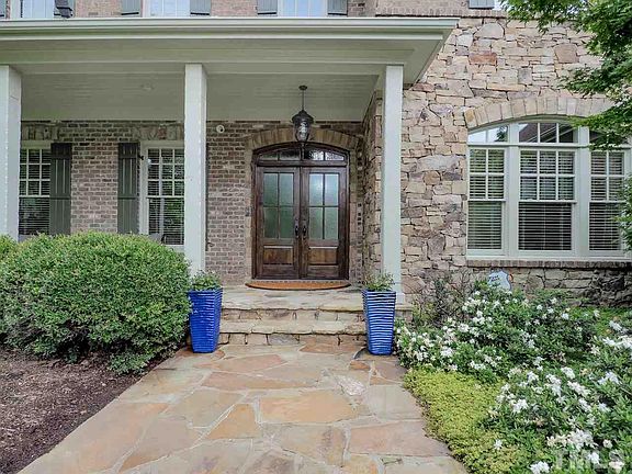 Custom Designed & Built by in '07-Magnificent Features include: 6300+ Sq ft, 6BR/5/2, 9' Ceilings on all 3 floors, 2 story LR, Custom moldings, Trim, Cabinetry throughout, Hardwd Fls 80% of house. Cooker's Kitchen includes:Stainless High End Appliances & Italian Marble Countertops, Exquisite 1st FL MBR w/luxury Bath/Closet, Lower Area Family/Rec Rm/BR, Wine Cellar, Music Room, Workshop! Screen Porch/FP, Huge Brick Patio overlooks private yard and LAKE!! Quiet Private Location near Shops, Rex Hosp, I-40.