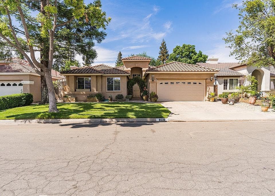 Beautiful move-in ready three bedroom, two bath home located in award winning Central Unified School District. This home boasts vaulted ceilings, a spacious master bedroom, dual sinks and a separate jetted soaking tub in the master bath, a finished two car garage with tons of storage, and an exterior security system. Walk outside to an entertainer's dream backyard, with gorgeous stamped concrete leading you from the sparkling pebble tec pool and waterfall to the complete built-in outdoor barbecue and sitting area. All of this conveniently located to the new El Paseo Shopping Center.