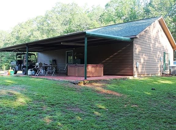 Beautiful 1 bed, 1 bath, country cabin with barn situated on 23 acres! Property is fenced for livestock or horses and has a stocked pond for fishing! 1,200 sq ft cabin has an open concept living and dining area and a master suite with a large bathroom and walk-in closet. Island in kitchen. Large laundry room with pantry. Tongue and groove walls and ceilings. Tile flooring throughout home. 16x40 covered back porch with hot tub! Water and septic available for add on possibilities. Monroe County School District.