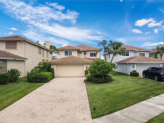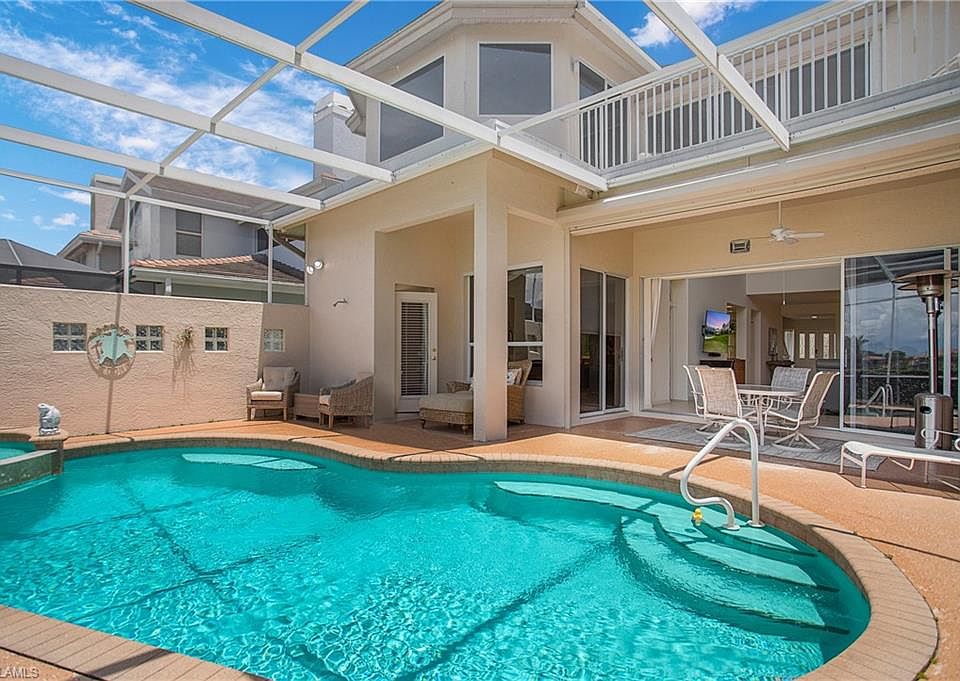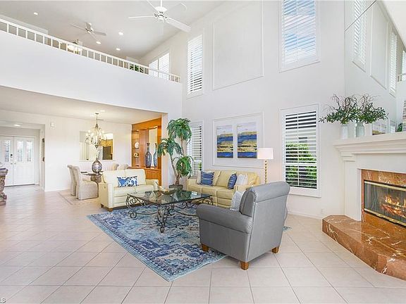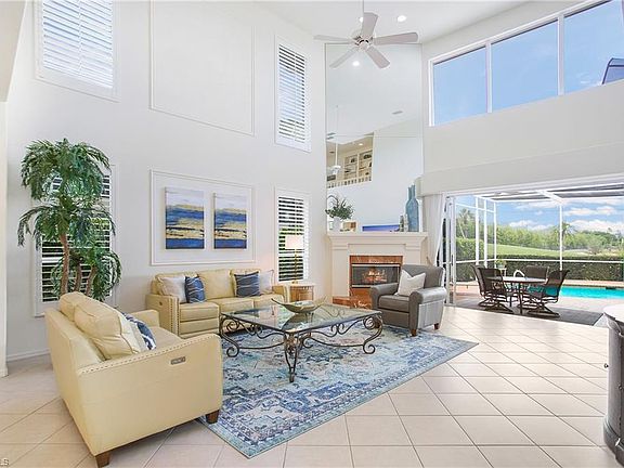 You won't want to miss this rarely available expansive home with picturesque golf course and lake views in highly sought-after Ana's Place at The Strand! This desirable North Naples location is just a short 6 miles to white-sand beaches. This light-filled 2-story home features over 4500 square feet of indoor and outdoor living space, 4 bedrooms plus a den and loft, and 3 full and 2 half bathrooms. You'll love the soaring volume ceilings, open layout, and elegant finishes such as a working fireplace, and stainless-steel appliances. This home also offers the flexibility of using the first floor bedroom with lanai access as the owner's suite, or the upstairs bedroom with a bay windows and private balcony. Take in beautiful sunset views overlooking the golf course and lake while sipping cocktails on your private screened lanai. A large heated pool, integrated spa, outdoor shower and ample dining, entertaining, and outdoor living space complete the outdoor oasis. Enjoy the current social membership or upgrade to a sport or golf membership. Amenities include a clubhouse, 2 restaurants, golf course, community pool, tennis, pickleball, basketball, bocce ball, walking/jogging paths and so much more! With so much to offer just outside your doorstep, including world class dining, shopping, entertainment, along with easy access to I-75 and US-41, this home truly has it all!