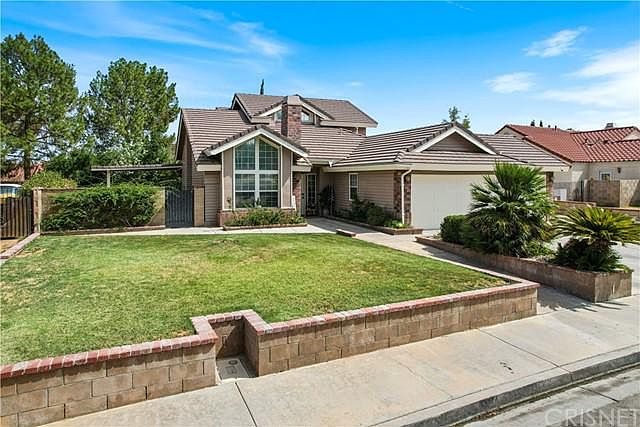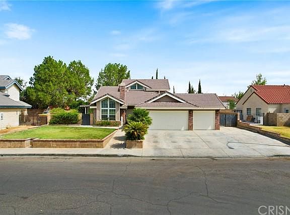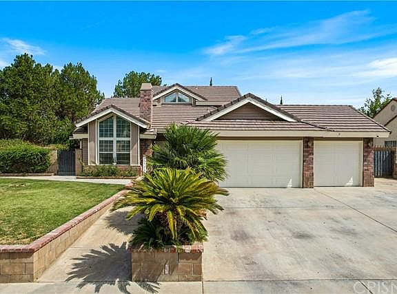 Imagine arriving home to this spacious 3 bedroom, 3 bath pool home, that sits just before the cul de sac. High ceilings and expansive windows greet you, bringing a sense of warm elegance and light to the well planned floorpan. Featuring reddish brown wood interior doors, glistening paver tiles, formal dining area andL-shaped living room fireplace. There is a majestic formal dining room between living room and kitchen.There are 2 bedrooms downstairs and two full bathrooms for easy access. The kitchen is large and has pleasant reddish wood cabinets with pretty countertops and center island for extra counter space. The side dining area or family room sits adjacent to another dining nookto the right of the kitchen, that leads the way to the pool area. The upstairs is majestic with its high ceilings, big walk-in and deluxe main bathroom, that offers a sink and mister area separate from the main bath. The loft is adjacent to the main bedroom and has a view of the living room for keeping an eye on things. There is a downstairs laundry room leading to a 3 car garage, highlighted by convenient stainless steel sink on the back wall, for multiple household uses. The pool area is completely fenced and has a spa, plus deluxe patio cover over a wide area. Huge gated RV area is long for storing your toys, and the driveway holds 3 more cars, perfect for gatherings. The backyard is completely fenced, with lots of room for playing outside the fenced pool area and the front yard even has a huge grassy area. This home checks off a lot of boxes and seems to have something for everyone.