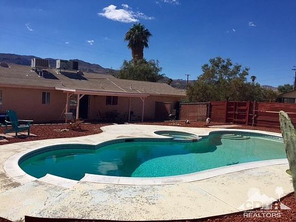 PRICED to SELL!!! Chocolate Drop area. Charming 3 bedroom, two bath house, very clean and ready to move in. Spacious living room opens to dining room and kitchen, which comes furnished with range, dishwasher and fridge. French doors lead onto the covered patio with additional privacy fence and an in-ground pool & spa surrounded by low-maintenance desert-scape that make this the ideal home for entertaining and for every day enjoyment. Pool pump replaced recently. Attached 2 car garage with laundry area, central heating and A/C plus swamp cooler, tile & laminate flooring on traffic areas, ceiling fans in almost every room. This home has been well maintained and will make a great home for a family of one, two or more. Sitting on a fully fenced, DOUBLE LOT with separate access and enough room for additional vehicle storage, a work-shop, or a vegetable garden. Fabulous mountain views! Easy access from Hwy 62 and a short drive to base. Near shopping, dinning and most other services.