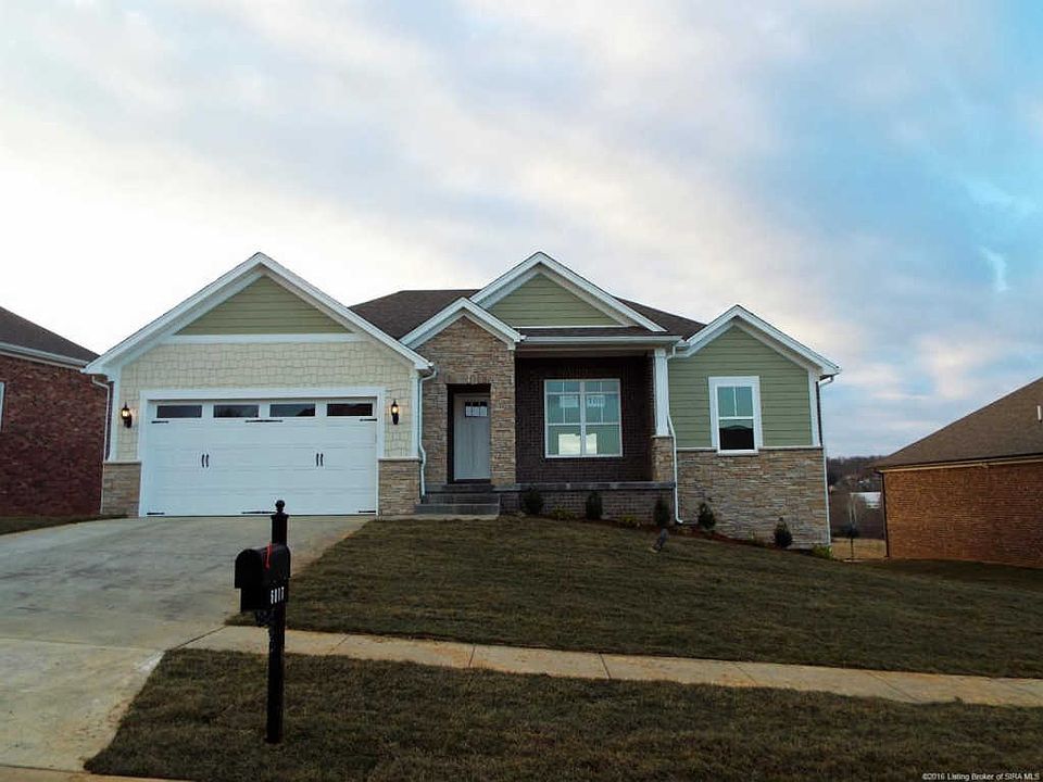 Open most Saturdays 1-3pm and Sundays 1-4pm. Premier Homes of Southern Indiana would like to present to you the Alexis split floor plan located in Knob Hill Subdivision. This beautiful home offers a covered front porch, open floor plan, 4 bedrooms, 3 full baths, kitchen with island, 1st floor laundry room, and finished basement. Spacious living room open to the kitchen and breakfast nook with sliding doors leading out to the back covered deck. Master Suite, trey ceiling, double vanity sinks, shower and spacious walk in closet. Finished basement with 4th bedroom, full bath, plenty of storage space, and family room with sliding doors leading out to back yard. 2 car attached garage with keyless entry. 2-10 Home Warranty. Builder is licensed real estate agent in Indiana.