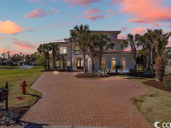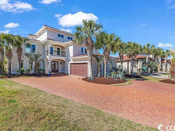 Don't miss this rare opportunity to own this 5 bedroom, 6.5 bathroom Mediterranean style home with a private, in ground pool, situated on the lake in the highly sought after gated community, The Bluffs! This home features upgraded flooring throughout the entire home, with top of the line fixtures, crown molding, and plenty of windows bringing in plenty of natural lighting in every room. The kitchen is equipped with all appliances including a gas range, double ovens, solid surface countertops, and custom cabinetry with a range hood and refrigerator to match! Each bedroom includes a ceiling fan, a large closet, and access to its own bathroom, while the master also features a luxurious master bath with a tiled walk in shower, oversized garden tub, and a walk in closet with custom built in shelving. Spend your days relaxing on either of your two- 2nd floor balconies, in the backyard on your huge paver patio with a ceiling fan overlooking the lake and the fountain, or floating in your private pool- enclosed by privacy walls for utmost security. This home truly has it all and is turnkey, ready for you to move in! The Bluffs community offers round the clock security, a clubhouse and amenities center with a community pool, playground, tennis courts, a boat ramp to the intracoastal waterway, waterfront sun deck, and more! Perfectly situated close to all of the area's schools, grocery, shopping, golf, and entertainment attractions, and just a short drive to the beach! You won't want to miss this; Schedule your showing today!