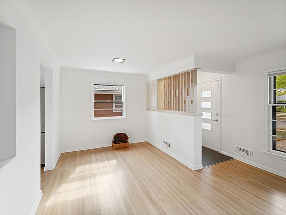 This home was completely remodeled in a Scandinavian influenced design in 2017. The floor plan was opened up, an open riser stairway system installed, the bathrooms were refinished with new fixtures and tile and the main floor hardwood maple floors redone. This home was painted throughout in 2017 and recently refreshed. It is flooded with light in every direction. All of the appliances, the water heater, furnace and air conditioner were new in 2017. The exterior has a new roof, cement board siding and a cedar fence. The large two car garage has a workspace and new concrete driveway. Walk out to the backyard from the kitchen to the expansive deck that is perfect for entertaining, barbecuing and growing a garden.