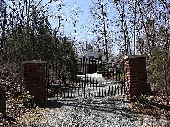 Privacy and serenity abound at this pristine country estate, yet only 2 miles to I-40 w/easy access to UNC,Duke,RTP. From the solar-powered entry gate to the exquisite landscaping, this home is exceptional. Gleaming HW flrs,new carpet, new roof, granite counters, dovetailed cabinetry, office w/custom built-ins. Enjoy open & wooded views of 4.5 acres (approx. 2 are fenced). 2.5 car garage w/workshop. Inlaw suite possibilities in lower level. A gardeners delight w/rain water storage tank. Brick/cedar ext.