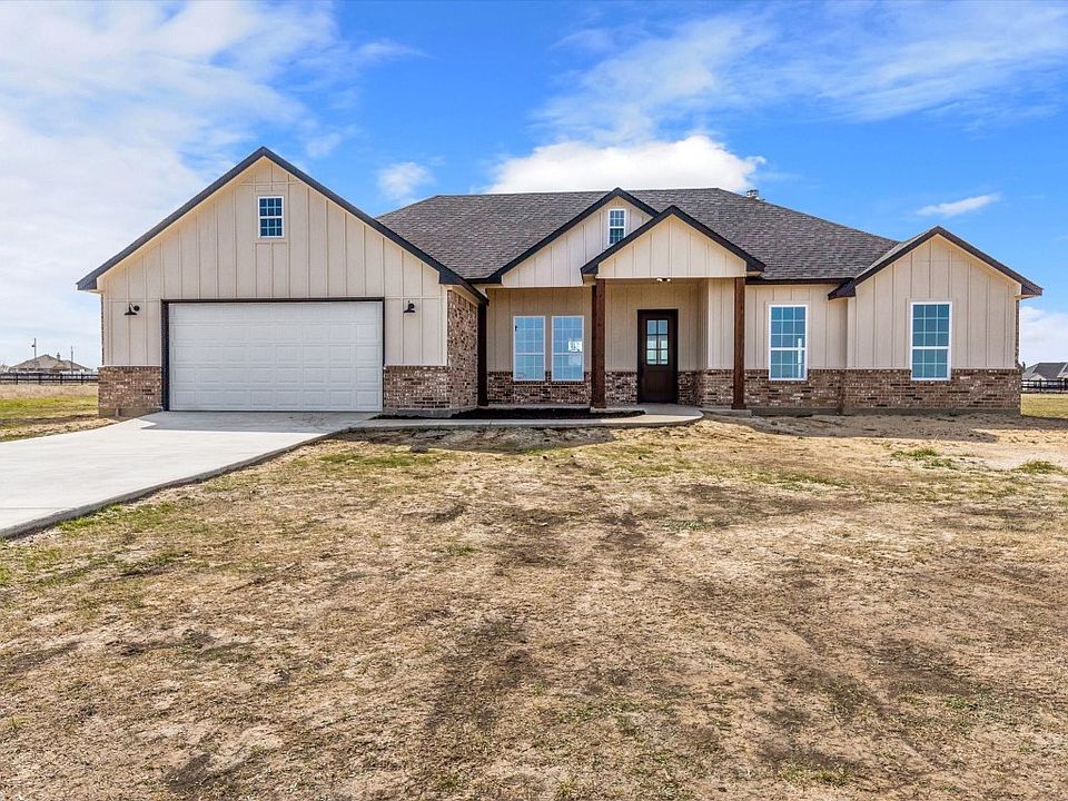 PRICE IMPROVEMENT!! New Construction Home sitting on 1 acre lot and located in the award-winning Godley ISD! This Custom 4 bedrooms, 2 baths home offers the best of both, the comfort of the country living and the convenience on the nearby cities. The open concept kitchen features white beautiful cabinets, wood-look title flooring throughout, ample storage, granite countertops, stainless steel appliances, tiled backsplash and a large central island with seating area. The kitchen opens to the breakfast nook with elegant box ceilings and chandelier. The spacious great room has vaulted ceilings with a cozy tiled wood burning fireplace and a wall of windows for tons of natural light. The expansive master suite with box ceilings and ensuite bath is complete with dual vanities, soaking tub, separate rain shower and custom tile work. Splits bedrooms with a secondary bath, beautiful tile work and dual sinks complement this home. Enjoy a morning cup of coffee on the front or rear-covered porch!