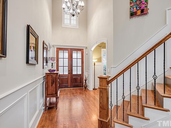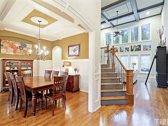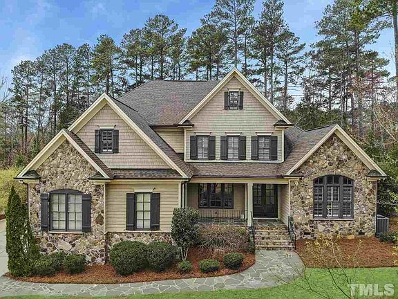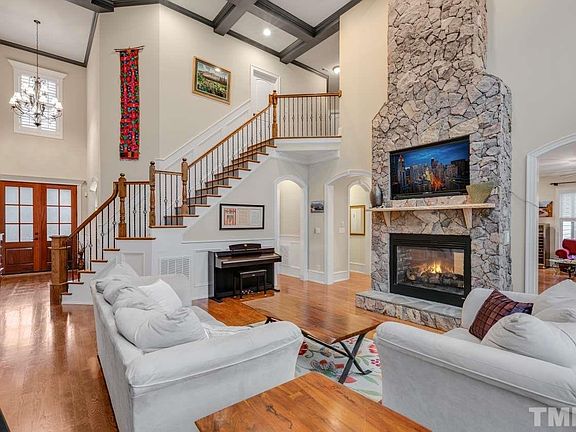 Detailed custom home with pool steps away from Umstead State Park. Dramatic 1st floor with a 2 story dbl sided fireplace ,oversized windows & 10 ' ceilings. Private office w/built in bookcases. Office & master retreat feature vaulted wood ceilings. 2 bonus rooms, one with wet bar & skylights. Versatile 3rd floor with full bath. Large stone fireplace & patio complete a fully fenced backyard retreat. 3 car garage with 2 extra parking spaces. Front irrigation. Location is remarkable. Relaxing & inviting.