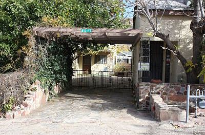 THIS UNIQUE HOME CONSISTS OF TWO STRUCTURES, ONE IS KITCHEN LIVING ROOM DINING AREA ADDITIONAL ROOM AND HALF BATH SECOND STRUCTURE HAS 3 BEDROOMS FULL BATH LAUNDRY AREA WORK SHOP (COULD BE CONVERTED INTO A KITCHEN THIS STRUCTURE IS TWO STORIES . YARD IS PEACEFUL SITTING AREA BITH GARDEN FOR PLANTING AN OUTSIDE BUILT IN ROCK BARBEQUE SHADE TREES ALL SITTING AT THE END OF THE STREET.