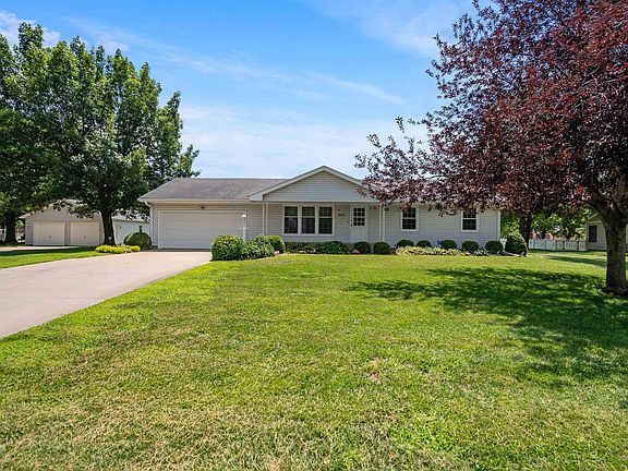 Welcome to this beautifully maintained 3-bedroom, 1.5-bath home nestled on a generous .95-acre lot. This residence boasts an abundance of natural light, creating a warm and inviting atmosphere throughout. The interior features a functional basement with built-in storage and a convenient kitchenette, perfect for additional living space. Recent updates include a new heater (Jan 2023), hot water heater (2018), and water softener (2023). The backyard is a gardener's delight with a well-maintained garden and a fantastic outdoor patio area for relaxation and gatherings. Additionally, the property includes a spacious 2-car detached garage, offering ample storage and parking space. This home is perfect for those seeking comfort, convenience, and a touch of nature. Don't miss the opportunity to make this lovely property your own!