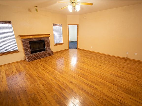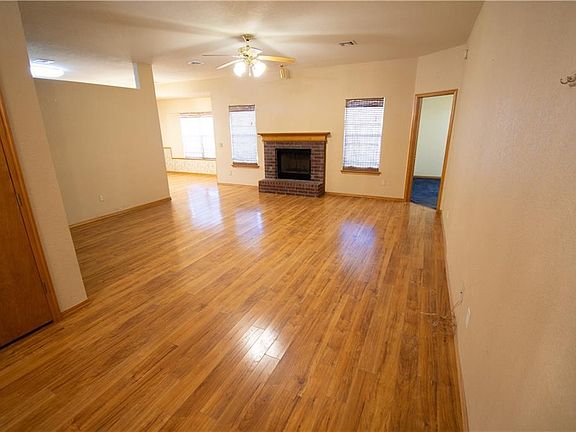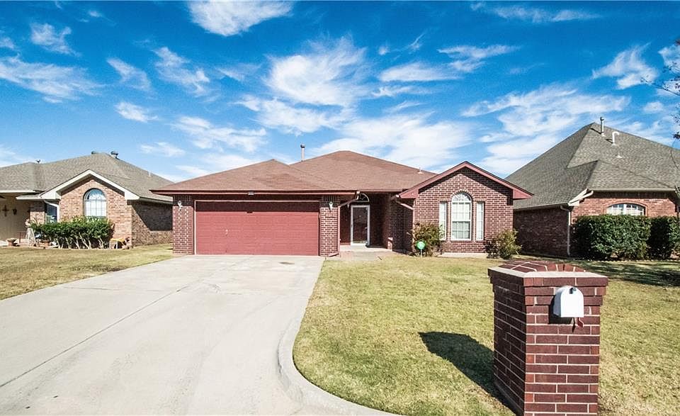 Rare find in Prairie Ridge Addition! This one owner home has been well taken care for! Fantastic location just off Sooner and 89th Street, just minutes to Tinker, I-240 and I-35. Well established neighborhood with community pool! Spacious living area with brick fireplace and wood mantel. Updated laminate flooring throughout dining, living and hallways. Kitchen boasts a large walk-in pantry, gas range, stainless steel refrigerator, updated tile flooring. Large dining area with bay window. Roomy master bedroom with master bathroom en suite with double vanities, separate tub/shower and walk-in closet. Fully fenced backyard with 8' back fence for additional privacy, extended back patio with brick pavers plus an 8x10 storage shed perfect for your lawn equipment. Storm shelter in garage floor. Property being sold "as-is". Owner will pay for $1000 carpet allowance. Moore School District.