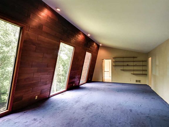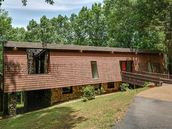 Mid-century modern, custom designed built by original owner/architect in the late 1960s. Living room features large angled windows, beautiful views of scenic back yard. Decks for entertaining upstairs and down. Lot goes beyond creek in flood plain. create YOUR bridge! Seller does not carry flood insurance