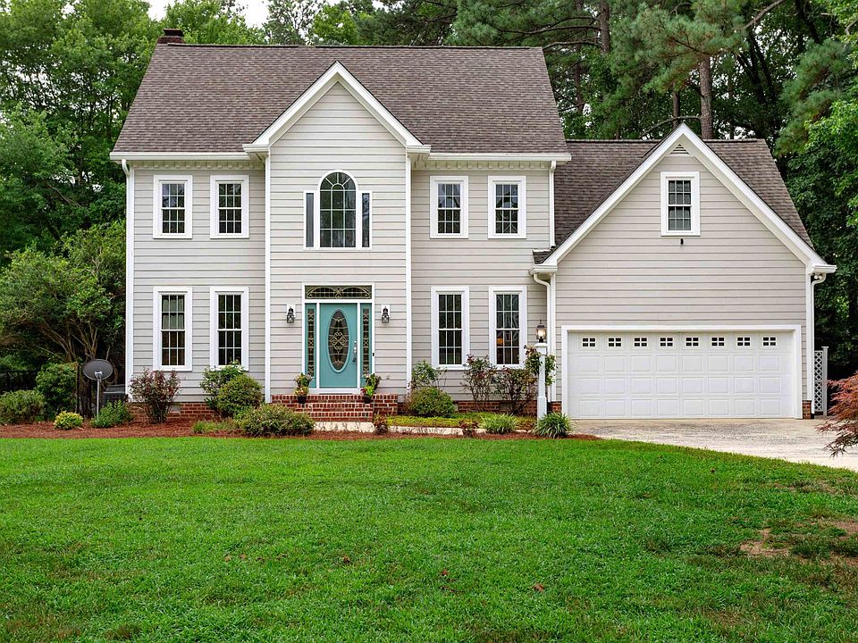 Wooded acre cul-de-sac lot in Heatherstone Subdivision! Inviting two-story foyer with hardwds extending throughout entire home! Both formals, family rm w/ wood burning frpl. Kitchen offers granite, tile backsplash, all newer ss appliances. First flr mstr suite & bath has garden tub, sep shwr & wtr closet. First floor laundry room. Front & rear staircase leads to spacious bonus rm w/ huge walk-up attic. Second flr offers three bedrms, updated full bath & office/study. Wonderful flat and wooded backyard. Detached shed and wire fence with gates surround property. HOA is voluntary. Conv to shopping, downtown Raleigh, Farmers Mkt, airport, Rt 1 & I-40.