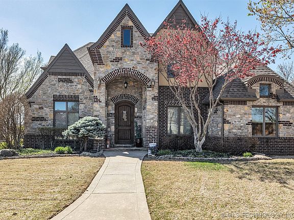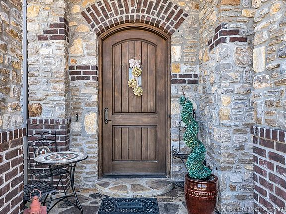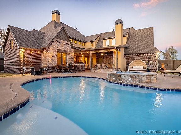 Stunning home in the popular Berwick neighborhood. This home was made for entertaining offering a large corner lot with stunning saltwater pool and spa, outdoor kitchen, fridge, outdoor entertainment system & fireplace. This well cared for home has new exterior paint, fence, tankless water heater & in-ground storm shelter. Amazing floor plan offering 2 bedrooms on the first floor plus office & formal dining. Each bedroom has a private bathrom & 1/2 bath conveniently located to serve as the pool bath. Come enjoy beautiful Oklahoma sunsets & barbeques at this timeless home in the Bixby school district.