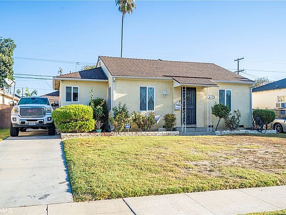 This charming Hollydale home offers a welcoming ambiance and functional spaces for comfortable living . As you enter, the expansive den sets a warm tone, offering a versatile area for various activities. The living room complements this by providing additional entertaining possibilities, while the adjacent eat-in kitchen enhances the cozy feel, ideal for meals and gatherings. The home features two nicely sized bedrooms, with the primary bedroom boasting its own private bathroom and convenient access to the backyard. Between the bedrooms, a thoughtfully designed interior laundry room equipped with ample cabinets. There is an additional full sized bathroom in the hallway. The upgraded windows installed some years ago and central air add to the functionality of the home. Both front and back yards provide space for outside enjoyment complemented by a two-car detached garage.