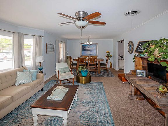 This Belmar Beauty With Circular Driveway And Great Curb Appeal Has 4 Bedrooms, 3 Bathrooms, 2 Living Areas. Entry leads to living / dining space with bay window. Den has brick fireplace with mantel & abundance of builtin cabinets for storage. Kitchen is open to den area for entertaining family & friends. Kitchen has window sink, eatin bar, black appliances & granite countertops. Large kitchen countertop could be used as serving or baking counter. Master retreat is oversized w/ 2 walkin closets & builtin vanity area. Bedrooms 2 & 3 share a full hall bath. 4th bedroom is isolated w/ 3/4 shower bath. Makes a great mother in law quarters or 3rd living area. Has door to back patio. Enjoy back covered patio and the Additional concrete patio in spacious back yard. This one won't last!