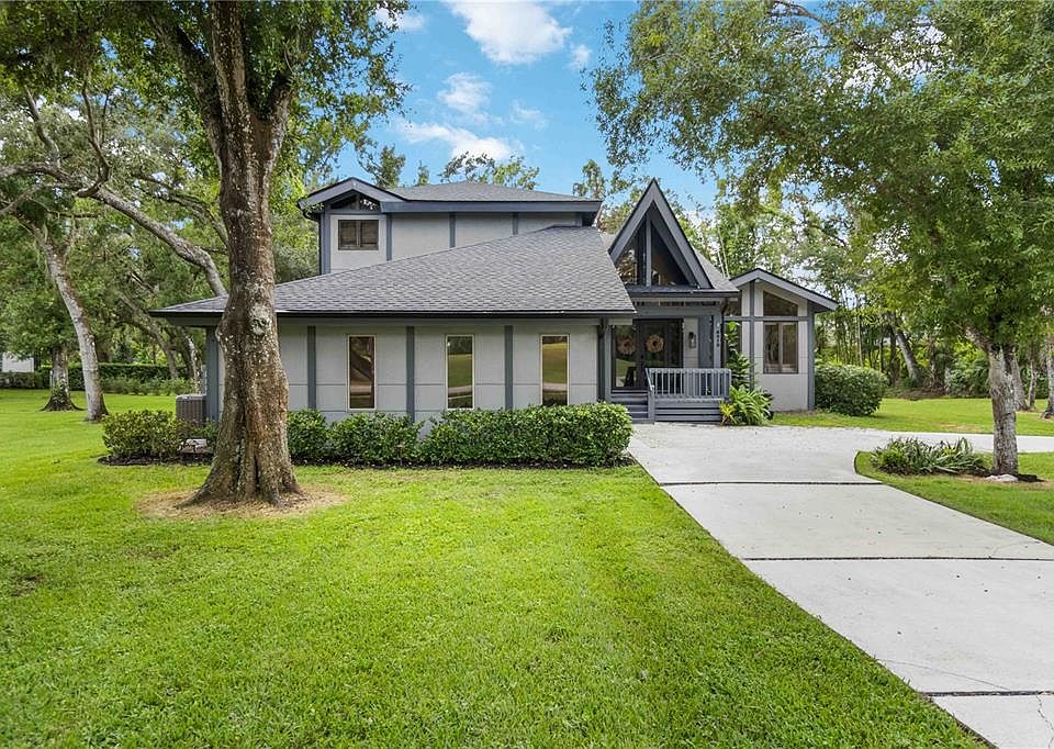 Built by an architect. Renovated in 2023 by a designer. Welcome to this stunningly renovated River Club home (2023), where modern luxury meets timeless design. Our interior designer helped reimagine the layout with modern, high-end finishes, coupled with elegant tile flooring throughout the home and an open atrium. Inside, the professionally designed kitchen makes a bold statement with custom wood cabinetry, dramatic matte-black appliances, and a striking waterfall-edge island with quartz counters. Vaulted ceilings, abundant natural light, and open sightlines create an airy, inviting atmosphere. The spa-like primary suite showcases a designer bathroom featuring a freestanding soaking tub, dual vanities, designer lighting, and a private patio sauna with a state-of-the-art smart toilet—your own private retreat. All additional bathrooms have been updated with the same attention to detail and style. Extensive upgrades provide peace of mind, including a new roof, new electrical, new AC unit, new plumbing, new hot water heater, whole-house water softener and RO in kitchen, and irrigation system. The entire house is also tiled and flows seamlessly around the different areas of the house. Set on a lush 1.13-acre lot across from the 4th hole, this home offers serene golf course views surrounded by mature tropical trees—providing a private, resort-like feel that’s rare this close to highways, shopping, dining, and area attractions. River Club is a golf course community open to the public, adding to the convenience and lifestyle appeal. Move-in ready and thoughtfully designed, this home blends luxury, comfort, and an unbeatable location—truly one-of-a-kind!