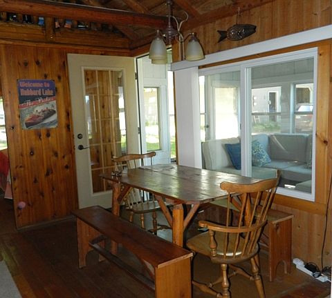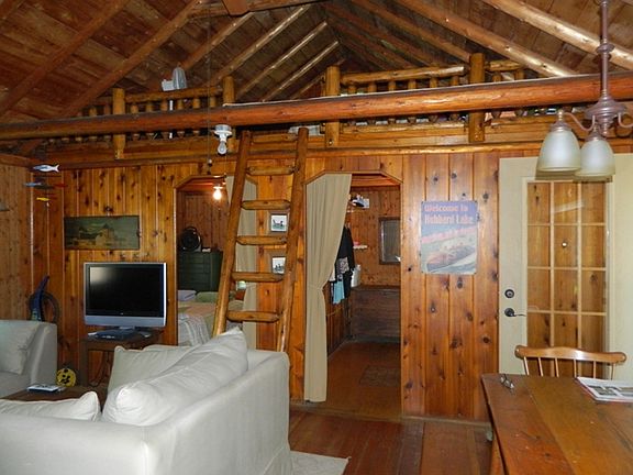 Affordable Hubbard Lake waterfront cozy 2 bedroom, 1 bath. Loft area for a possible third bedroom. Open kitchen, living, and dining area. Knotty pine interior with open beam ceilings. Many updates. New septic system in 2006, new kitchen and bath in 2007. All Anderson windows except the enclosed porch. Tank less, on demand hot water. Detached 24 x 28 drive through garage with laundry hook-up. Lot is 50 x 389.