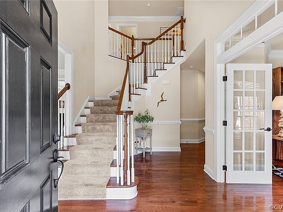 WOW just reduced to a great new price! Welcome to this stunning Brick Front home nestled in the the highly sought-after Foxcreek neighborhood boasting 5 BR, 2.5 BA, and almost 4000 sq. ft of luxury living space. This home offers gleaming hardwood floors, formal living and dining rooms completed with crown molding & wainscoting, and a family room featuring a gas fireplace with stacked stone surround. The gourmet kitchen is a chef's delight with an unobstructed granite island with breakfast bar seating, SS appliances, top of the line Maytag dishwasher (2022), walk-in pantry, and bright and airy Morning Room, great for entertaining. On first floor, you will find a convenient laundry room and powder room. The massive primary suite is a retreat with a tray ceiling, sitting room, dual walk-in closets, and a luxurious en-suite with tile floors, separate vanities, water closet, garden tub and walk in shower. Four additional large bedrooms with walk-in closets share the hall bath with double vanities. Enjoy ample storage and a spacious deck overlooking the beautiful private tree-lined backyard. Completing this home is a two-car garage side entry garage and aggregate driveway. This home is a must-see, make your appointment now! "New Carpet just installed in the family room and the entire second level."