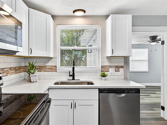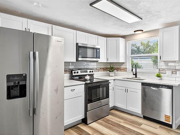 Get ready to fall in love this fully renovated home is one of New Port Richey's desirable communities. *The seller will help with closing concessions with an acceptable offer*. With a brand-new roof 2025, brand-new windows 2025, brand-new HVAC with new AC ducts, this stunning 3-bedroom, 2 bathrooms property offers an exceptional lifestyle in one of the city's prime locations. This home was designed with comfort in mind, with smart layout that maximizes every square foot. Enjoy the elegance of freshly laid LVP floors, which are not only beautiful but incredibly easy to maintain. The kitchen, the heart of any home, is a dream come true for cooking enthusiasts, with brand new wooden shaker style cabinets, brand-new stainless-steel appliances and brand-new quartz countertops. The fully remodeled bathrooms, with a modern design are great for relaxation. But the best part is your private back yard! Imagine those sunny Florida days, cooling off in the shade and breeze in your own space, creating unforgettable memories. This home is located in non-flood zone and was not flooded or damaged during 2024 hurricanes. This home offers you the opportunity to live in great location, close to everything you need. World Famous Clearwater Beach is only 45 min drive! Please come and discover for yourself everything this incredible property is worth You will love it!