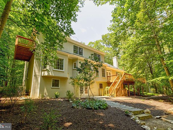 Nestled among the trees at the end of a softly curving private driveway you will find 6019 Blue Bell Court. This beautiful waterfront residence sits centrally on 5.074 acres of wooded land in Waterview Plantation, Manassas, VA. The home is just steps away from the Bull Run River. There are two finished levels and a large unfinished basement with doors leading to the patio and the path to the river and private dock. This is an ideal home for those who enjoy water-based activities or wish to enjoy the tranquility of the riverfront location. The unfinished basement offers the potential for further customization and expansion. The first level contains a library, living room, formal dining room, powder room, and large, open, well-equipped, eat-in kitchen that opens to a spacious family room with a grand stone fireplace. Large windows along the back of the home provide abundant natural light and a year-round peaceful and picturesque living experience. A large outdoor back deck runs the length of the house and may be accessed from both the kitchen and family room. Upstairs you will find the primary bedroom, three additional bedrooms, and two full bathrooms. The primary bedroom boasts an extremely generous walk-in closet that could easily accommodate a dressing area. The primary ensuite bath has a double vanity, jacuzzi bathtub, and separate shower. The primary bedroom also has two private decks. The home has been freshly painted. New wall-to-wall carpet has been installed upstairs and in the family room, and new flooring has been installed in the kitchen and laundry rooms. All the decks have been freshly stained. In 2019 the roof was replaced, the front porch and overhead balcony were rebuilt, and the primary bath shower was upgraded. In 2022, the HVAC duct system was cleaned, a new water filtration tank was installed, and a gas log fireplace was installed. In 2023, photocell and low voltage driveway lighting, and new lighting along the front walkway were installed. In addition, the electrical panel circuits were upgraded, an air purification system was installed, and two new garage doors were installed. In July 2024, the new private dock was completed. 6019 Blue Bell Court is only 30 miles from Washington DC, 22 miles from the nearest airport, and approximately 4.5 miles from grocery stores, shopping, and dining.