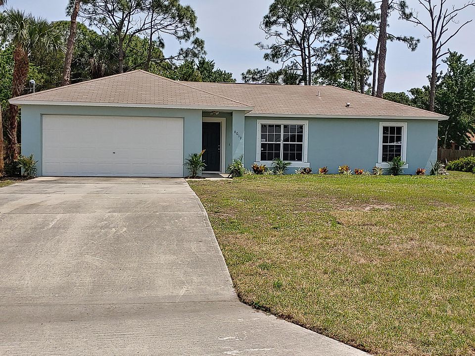 Charming remodeled home great for first time home buyers or retirees. This home features open floor plan with vaulted ceilings, 3BR, 2BA split, with a 2 car garage, alarm system available,. Freshly painted inside and out with a huge backyard.Kitchen range and hood are brand new. Easy access to I-95, close proximity Orlando, Space Center and shops. Priced to sell! A must see!