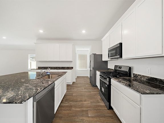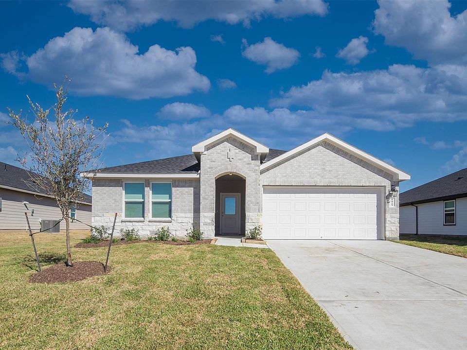 **BRAND NEW NEVER LIVED IN ** D.R. Horton Kingston Plan is a charming one-story home offering 4 bedrooms, 2 bathrooms, and a 2-car garage. The open-concept design flows seamlessly into the spacious family room, dining area and kitchen, leading directly to a covered patio for seamless indoor-outdoor living. A spectacular backyard offers ample greenspace for outdoor activities. Centrally located kitchen includes oversized breakfast bar with beautiful countertops and stainless-steel appliances perfect for everyday living and entertaining. The primary suite features attractive primary bath with dual vanities and walk-in closet. Evergreen is an exceptional community with fantastic amenities, including pool, playground and upcoming pickleball courts, all nestled in the thriving city of Rosenberg! Brand new appliances including side-by-side refrigerator, washer and dryer. Automatic garden sprinkler system for ease of yard maintenance. You will love this new home! Schedule your tour today!