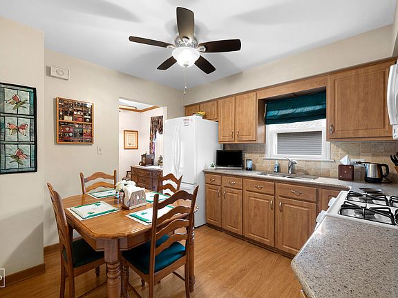 You'll fall in love the moment you step in the door. Entertaining at its best in your living / dining room combo with hardwood floors & beautiful windows. Perfect for letting in all the sunshine. Create a gourmet feast in your eat in kitchen that boasts pretty cabinets, decorator countertops and wood laminate floors. All 3 bedrooms boast hardwood floors. You will love the full bathroom with fabulous shower! You will appreciate the full basement that is partially finished, has a huge laundry / storage area and a wonderful work room. Oh, the possibilities! This summer will be your best in your HUGE yard with covered patio & boasts lots of room for parties, the kids to play & dogs to run! Check out the HUGE 2+++ car garage. Perfect for all your toys, workshop or extra storage space. You will love all the recent updates that have been done in approximately the last 7 years. New roof, furnace, air conditioner, humidifier, leaf guard, gorgeous, refaced cabinets, backsplash, countertops and refrigerator. Windows were done around 2005. WOW! Yes, you can have it all but you better hurry... This beauty will not last!