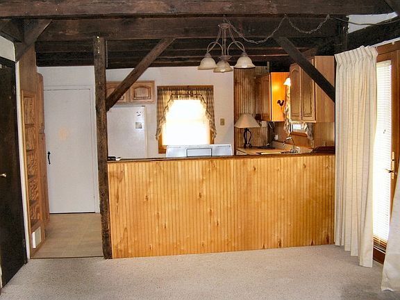 Charming historic carriage house on lovely grounds.Interior features loft bedroom with walk-in closet, an open floor plan with exposed beams.Wrap around deck! Laundry! Neutral decor! Over-sized garage built in. Now available! Wood burning stove is not to be used by tenant per insurance company.Landlord does grounds maintenancea and plows the driveway. CAT OR LEASHED SMALL DOG ALLOWED!