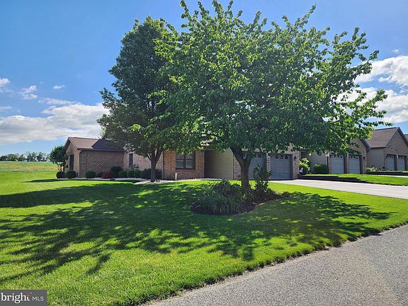 **Offer deadline of Wednesday, 5/28 by 9:00 PM. ** Discover this beautifully updated, single-level end-unit townhouse, offering serene country and mountain views in a peaceful setting. The seller recently purchased this gem and began personalizing it with thoughtful upgrades, but a change in plans presents a unique opportunity for you to make it your own. This 3-bedroom, 2.5-bath home boasts an open floor plan with abundant natural light and sightlines from the front door to the expansive covered back porch, perfect for enjoying tranquil views. Step inside to a professionally painted interior, showcasing a spacious combo living and dining area anchored by a striking stone propane fireplace. The partially open kitchen features brand-new Frigidaire Professional Appliances, matching cabinet pulls, quartz countertops, and a breakfast peninsula ideal for casual dining. The home includes two primary suites, each with its own full bath—the largest suite offers a massive walk-in closet, a second closet, and a modern bath with a newer walk-in shower. The front bedroom doubles as a versatile office or den, and storage is abundant with closets throughout. Recent upgrades include new garage door openers, garage door springs, and a roof replaced by the prior owner in 2024. The seller has new 4.5 inch primed baseboards, two new toilets and 95 feet of wood-looking higher grade sheet vinyl on-site, ready for installation that can convey. Originally planning to replace all flooring, the seller is offering the home as-is at the sale price, with the option for a flooring escrow or cash back at closing to assist with financing for new flooring so you can make it your own. Additional highlights include a larger 2-car garage, a combination half bath and laundry room that includes a brand-new matching GE dryer and top load washer, and a large covered back porch with an outside storage closet, perfect for relaxing or entertaining. The farmland behind the house is owned by the Shippensburg Community Fairgrounds. With no stairs to navigate and a layout designed for comfort, this townhouse combines modern convenience with peaceful country living. Don’t miss your chance to own this delightful home with endless potential!
