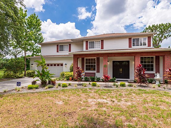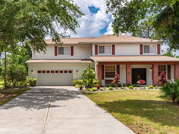 Are you craving more space? This Mill Creek home may be the perfect next home for your family. Situated on a large home over 3/4 acre home site. The curb appeal is impressive with mature oaks, a long driveway, and no side or neighbors to the rear. Upon entering the 22 foot ceiling height of the great room will impress. Master bedroom and one guest room are located on the first level, while there are 2 additional bedrooms, and a large bonus room or 5th bedroom. Separate office as well downstairs gives even more flexibility. The kitchen has updated appliances, wood cabinets, and a large breakfast bar. The master bedroom has two walk in closets, dual vanities, garden tub, and separate tub too. Imagine hanging out in the back yard by your sparkling pool overlooking your quiet back yard. Mill Creek is a great neighborhood, with large home sites, low HOA fees, no CDD fees, excellent schools, and nearby shopping. Make sure to check out the virtual tour links to see the matterport tour, and video tour.