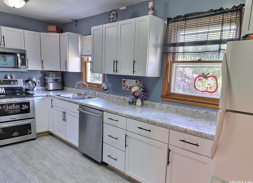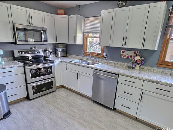 Welcome to Your NEW Home in an affordable price range in excellent condition! This cozy ranch is fully finished with a Dream Yard that consists of a fenced yard, patio, shed and completely surrounded by trees and lilac bushes. This stunning home has steel siding & brick, several interior Updates and is move in ready. If you want to live on a private/quiet street close to school in NW Mandan this is the one you've been waiting for! This ranch style home is the most sought out floor plan with 2 bedrooms on the main and option to easily add 2 more bedrooms in the basement. This is an excellent opportunity for rental or a new owner who wants to buy for cheaper than rent. Lots of upgrades that include new carpet in the basement, BRAND NEW MODERN STYLE KITCHEN FLOORING, new water heater and radon mitigation system plus carpets are freshly cleaned! The kitchen has been updated with new white shaker style cabinets, stainless-steel appliances with a double oven and a window to have a perfect view of your private yard! The main level has an open layout for the kitchen, living, and dining area. The main floor also has 2 spacious bedrooms and a FULL bathroom. Downstairs finished basement includes a large family area excellent for entertaining. The laundry room that has a 3/4 bathroom (shower), and the washer/dryer are Negotiable. The family room could easily be converted to a 3rd or 4th bedroom with plenty of space for a massive family room. This home is complete with an attached oversized 1 stall garage and a completely fenced in backyard. Remember a huge selling feature is a Fully fenced yard that is great for entertaining and lots of privacy. Call an agent to view today.